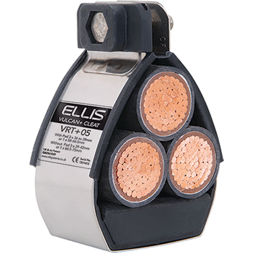 Our Vulcan+ cleats have a unique compact design so they can be easily installed, even when space is limited. Vulcan+ cleats are available in multiple sizes with range-taking capability, to suit trefoil, single, quad or bundled cables.
