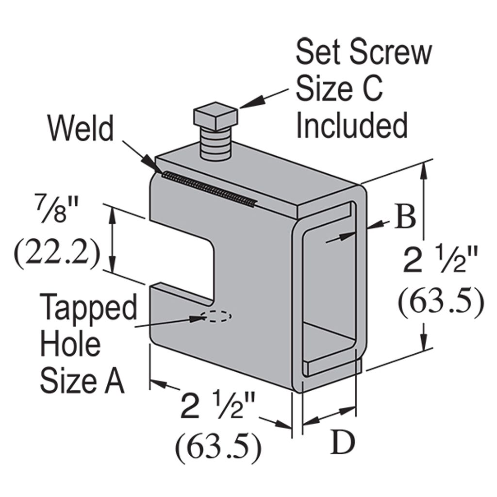 Notes: For beams under 7/8″ (22.2) thick flange.; Weld is not continuous it is either 11/4″ (31.8) – 13/4″ (44.5) long or 2 spot welds. All welds are on the top and bottom.