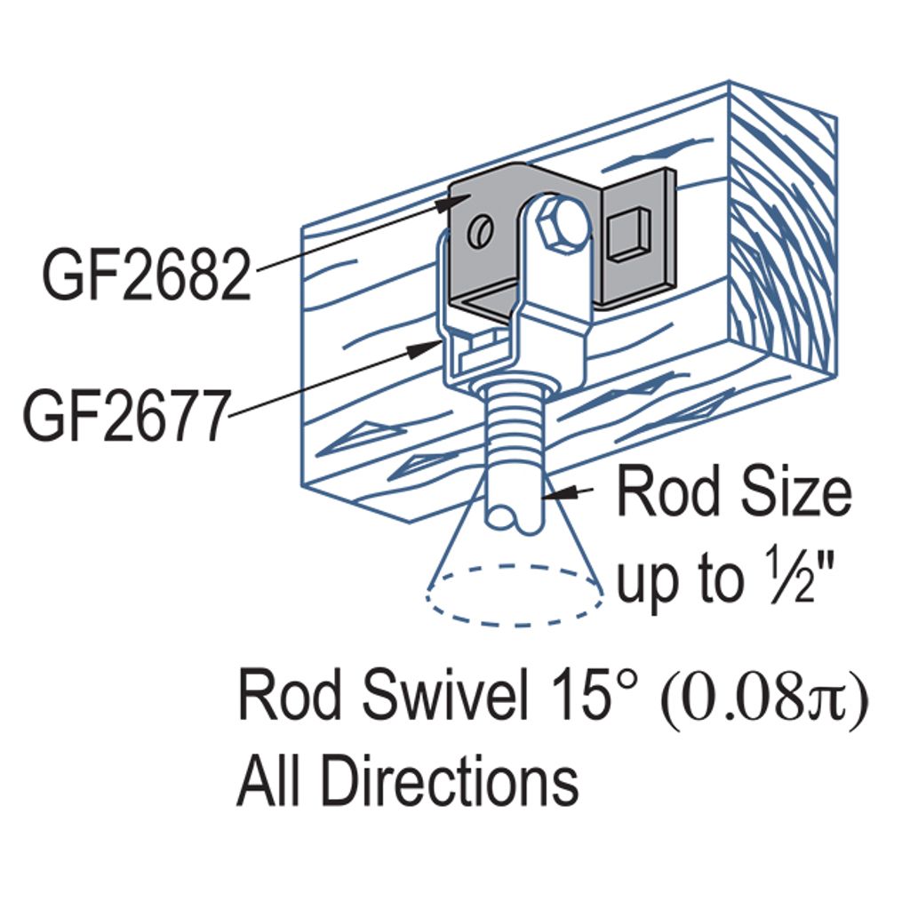 Notes: Hanger clevis for up to 1/2″ (12.7) rod suspension from wood ceilings. May also be used with GF2677 as illustrated in application drawings.